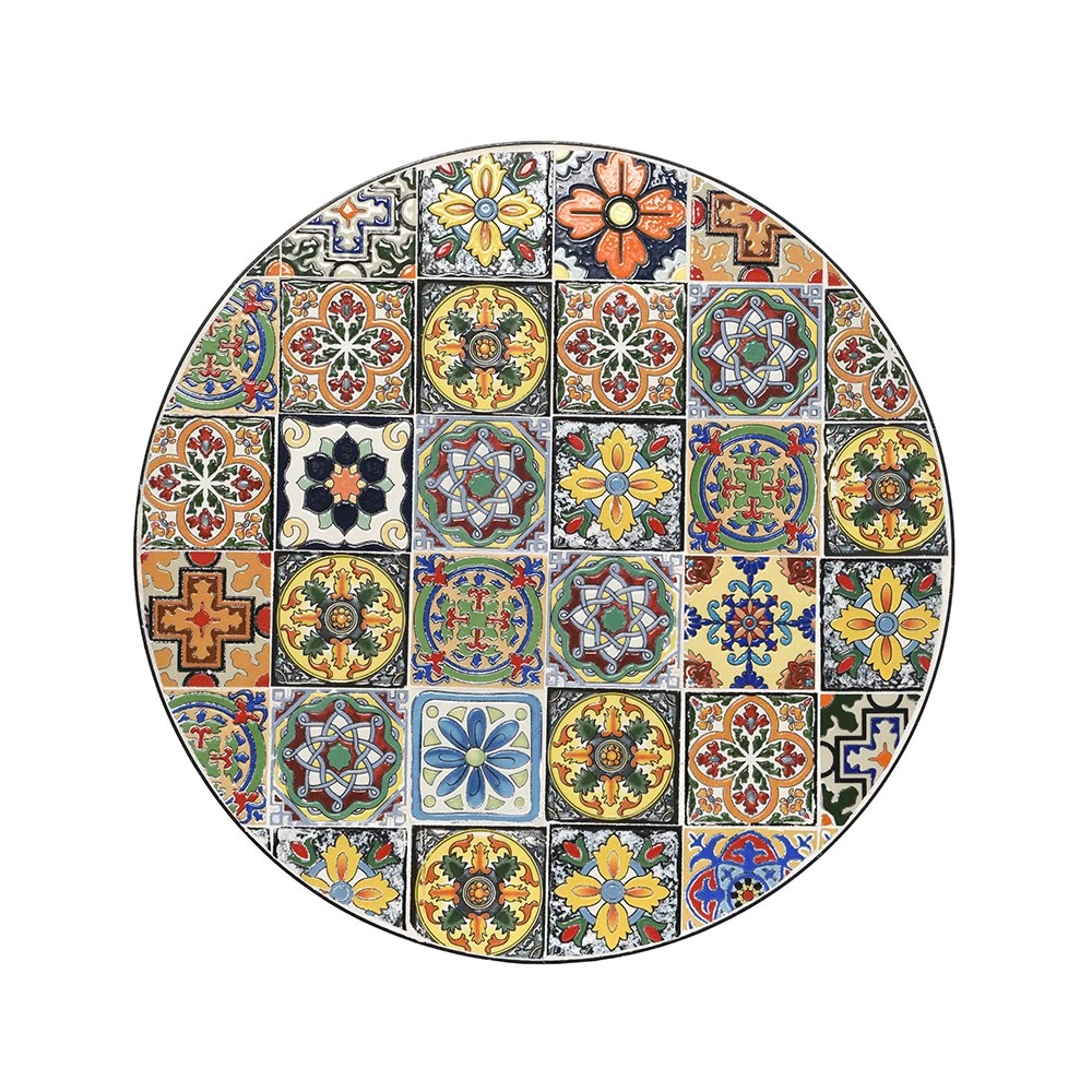 De Bistro tafel Braga is een prachtige aanwinst voor je tuin, terras of balkon. Met zijn diameter van 60 cm en hoogte van 76 cm is hij perfect geschikt voor een kleinere ruimte. Het tafelblad is gemaakt van keramiek met een mozaïek patroon, wat zorgt voor een stijlvolle en elegante uitstraling.