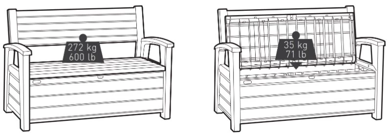 Eigenschappen Keter Hudson Opbergbank 260L grafiet