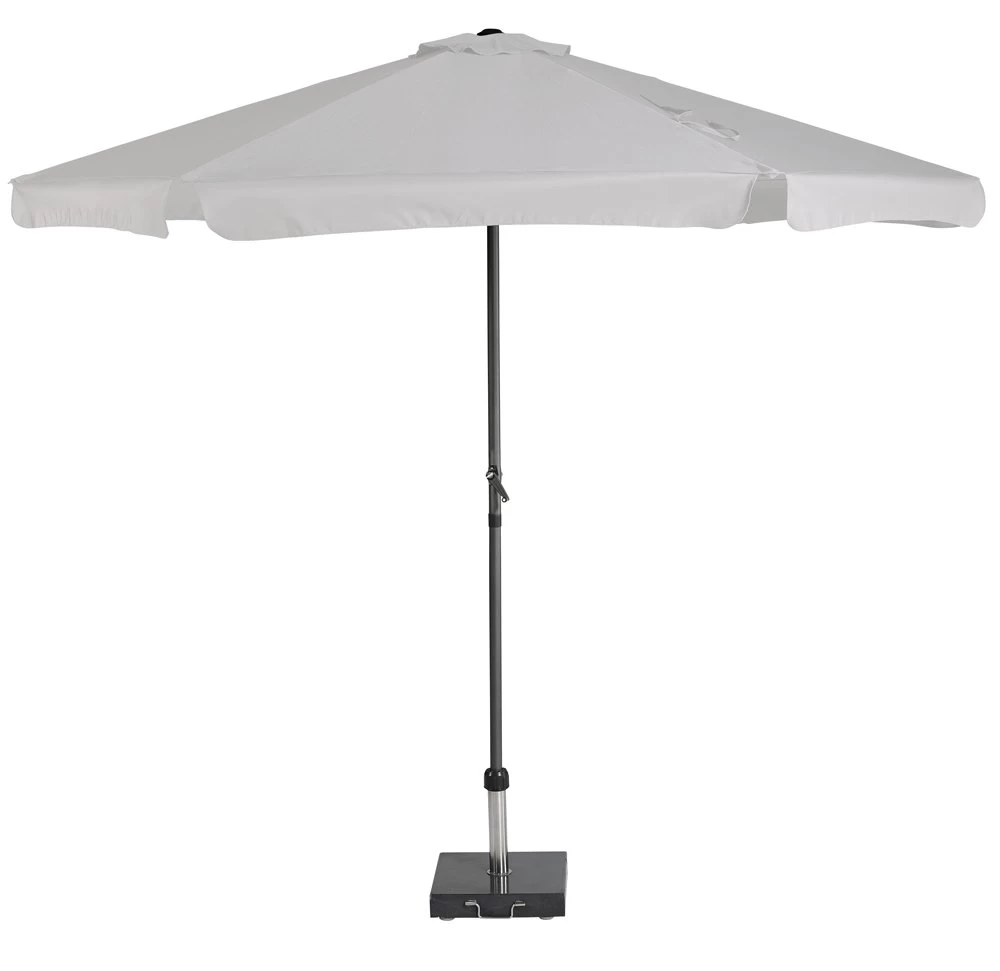 De parasol wordt zonder voet geleverd. Wij adviseren deze parasol op een 30kg parasolvoet van Platinum te plaatsen.