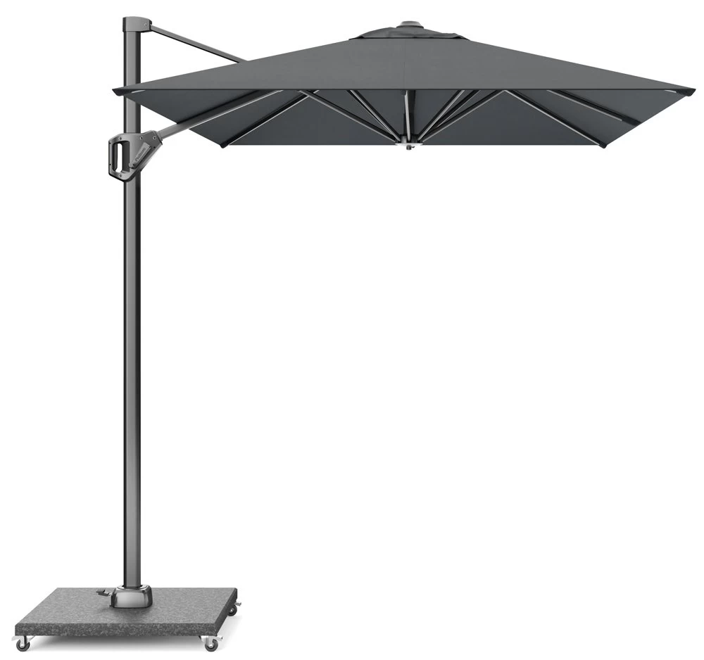 - De zweefparasol heeft een antraciet frame met een antraciet doek