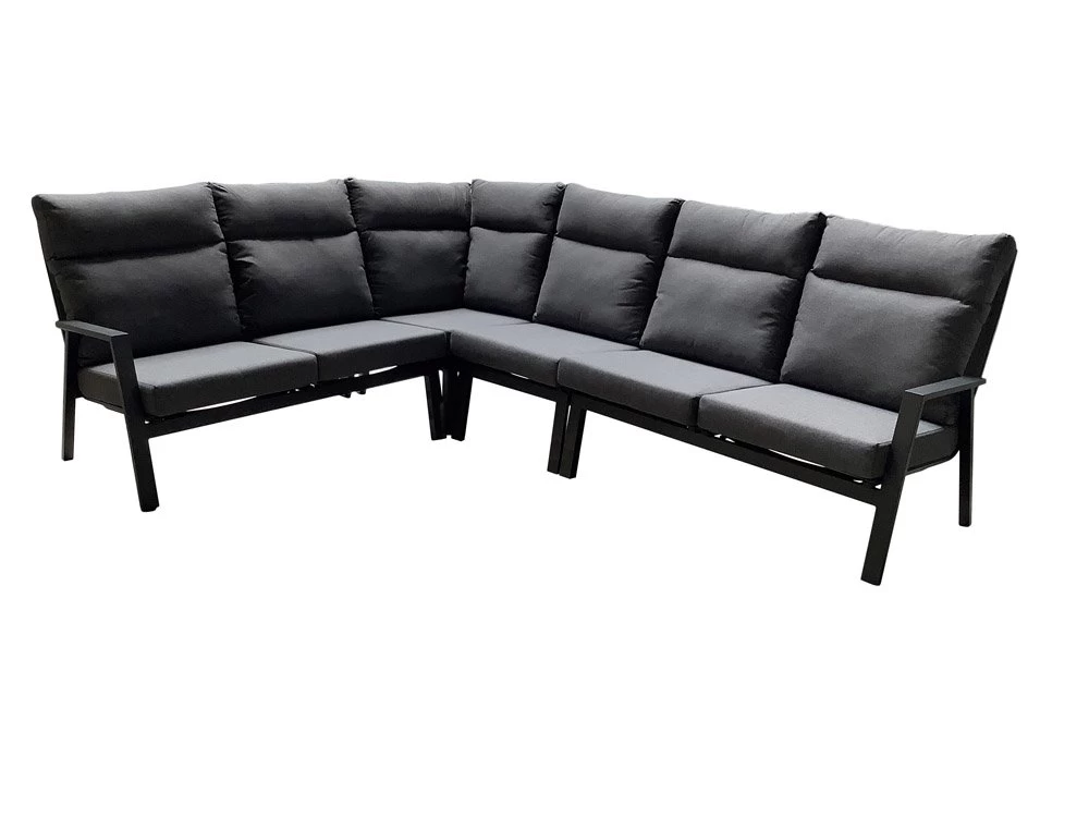 De HAVANA hoek loungeset heeft een zwart aluminium frame. Hierdoor is deze set licht in gewicht, erg sterk en goed te onderhouden. Daarom wordt aluminium veel gebruikt in de productie van tuinmeubelen. De SOL salontafel heeft een aluminium frame en is voorzien van een keramisch tafelblad. Deze tuinset wordt inclusief grijze kussens geleverd. Dat wordt heerlijk genieten deze zomer