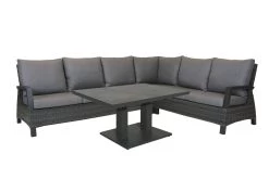 Met deze prachtige hoeklounge uit de LISSABON serie van Royal Seasons kun je eindeloos genieten in de tuin. Het is gemaakt van hoogwaardig wicker met een aluminium frame. Aluminium is licht in gewicht en bovendien erg sterk. Daarom wordt aluminium veel gebruikt in de productie van tuinmeubelen. De hoekbank is inclusief de SOL in hoogte verstelbare tafel. Kortom – een zeer luxe hoeklounge waarmee jij maximaal geniet van jouw tuin!