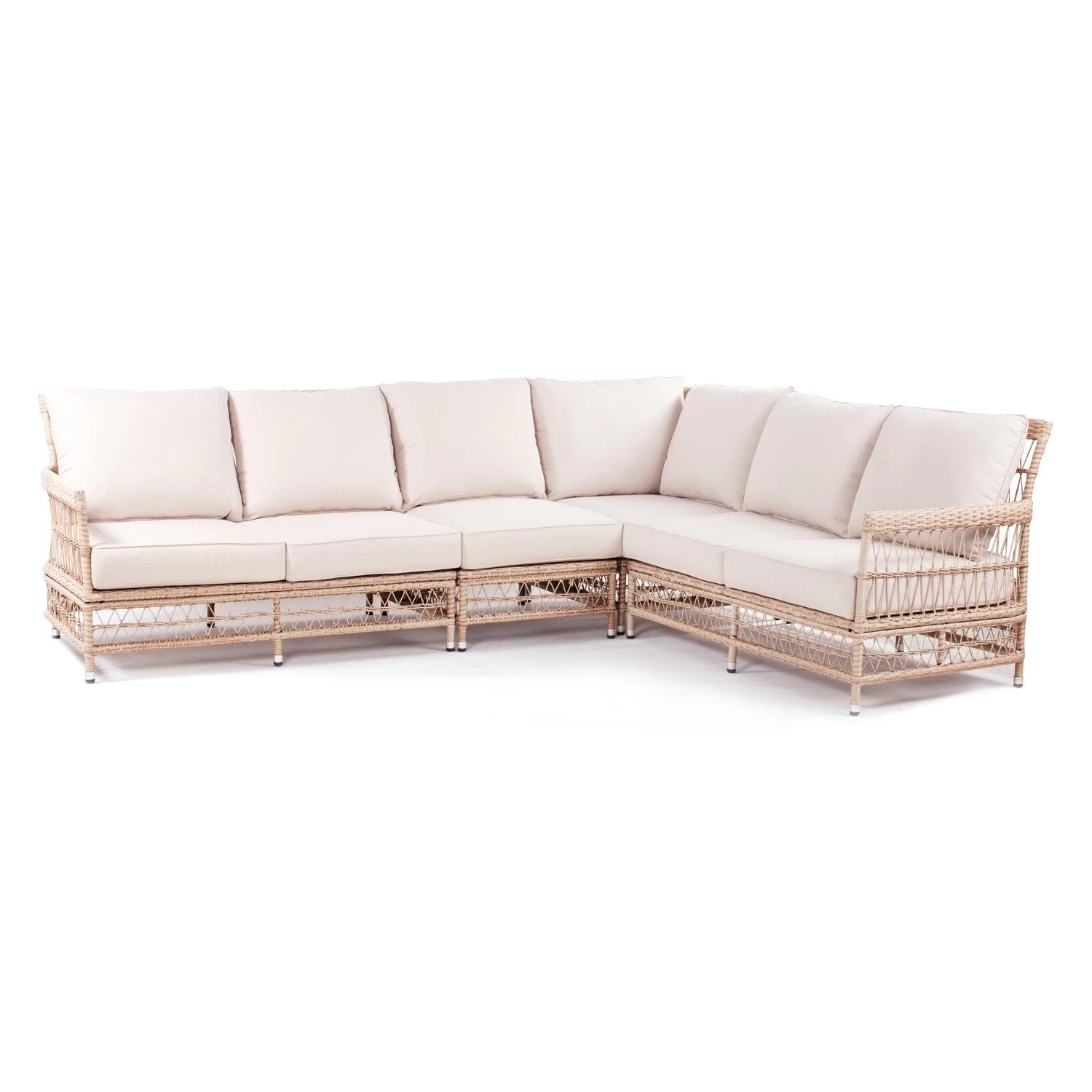 De MAURITIUS hoekbank is een stijlvolle en comfortabele tuinbank die perfect is voor ontspanning in de buitenlucht. De bank heeft een metalen frame dat is afgewerkt met hoogwaardig wicker in de kleur beige, wat zorgt voor een natuurlijke uitstraling en een duurzaamheid. Met afmetingen van L 285 x B 220 x H 95 cm biedt de hoekbank voldoende ruimte en comfort voor gezelligheid met vrienden en familie. De bank sluit mooi aan bij de andere producten uit de MAURITIUS-serie en wordt geleverd inclusief kussens voor extra comfort. Geniet van het buitenleven in stijl met de MAURITIUS hoekbank!