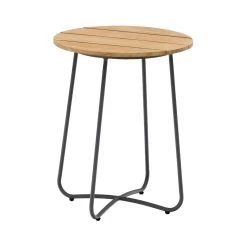 Deze ronde bijzettafel voor buiten is gemaakt van aluminium en teakhout en is ideaal voor het serveren van dranken, snacks of andere kleine items. Deze tafel is voorzien van een blad gemaakt van teakhout en is dan ook gemakkelijk te onderhouden. Ook het frame, gemaakt van aluminium, heeft als voordeel dat het gemakkelijk schoon te maken is en niet roest.